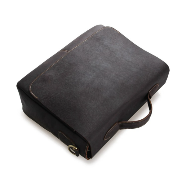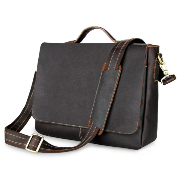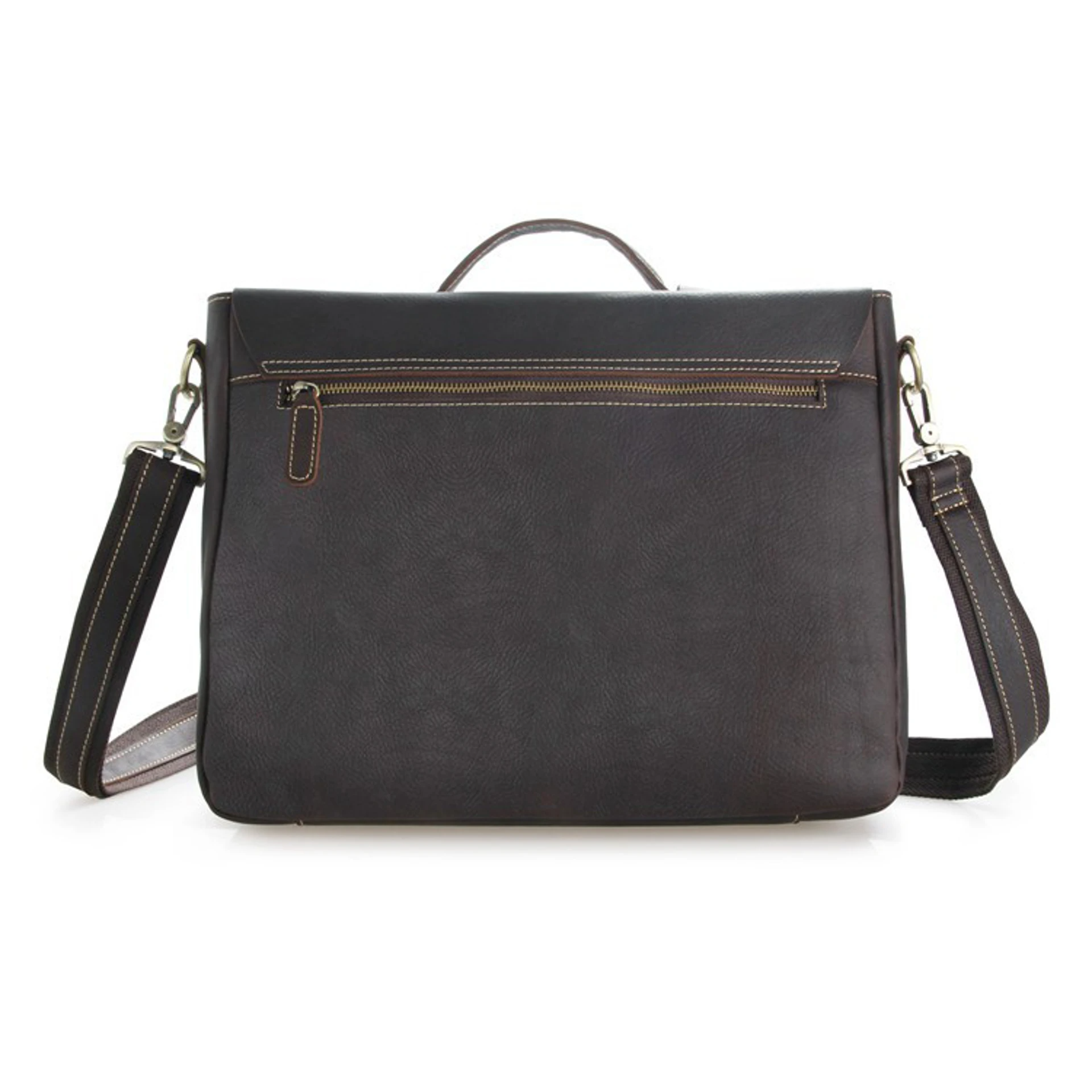 The soft body of this 100% genuine leather bag is simple yet elegant and while your more casual look may seem casual, this briefcase is the opposite of that. Two pockets close with buttons on the front and combine with a larger space on the back dedicated to your tablet.