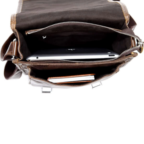 It features a small zipper on the back and two compartments on the front. Simple, but with room for whatever you might need.